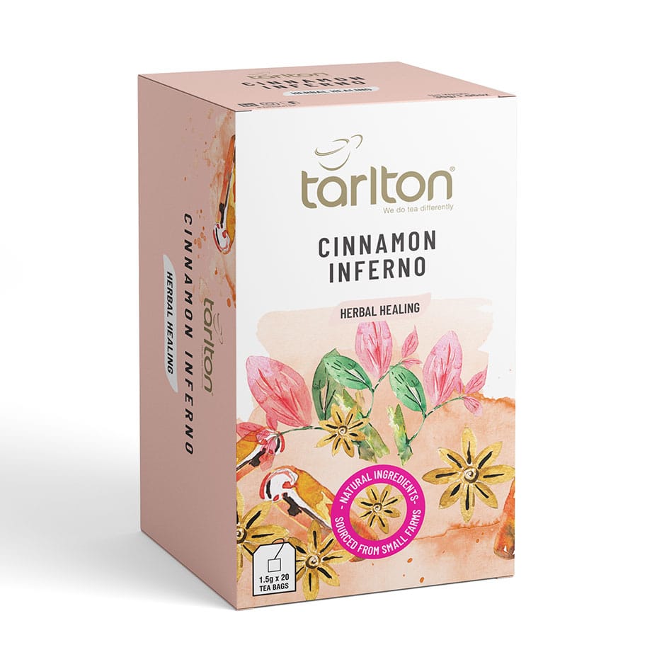 Introducing our Cinnamon Inferno Herbal Tea, a bold herbal blend that ignites the senses with woody, smoky cinnamon notes and a warm, spicy aftertaste. This herbal tea is made with cinnamon, pepper, licorice and ginger. This invigorating infusion delivers depth and intensity to wellness tea drinkers. Packed in staple-free tea bags with paper envelopes, it ensures freshness and fiery flavor.